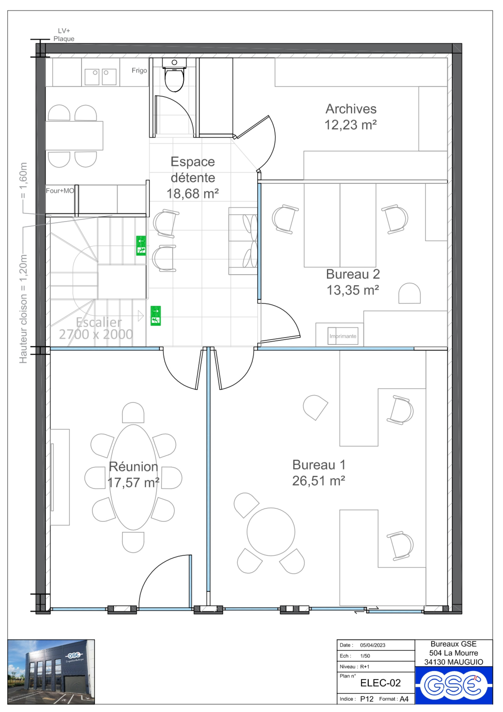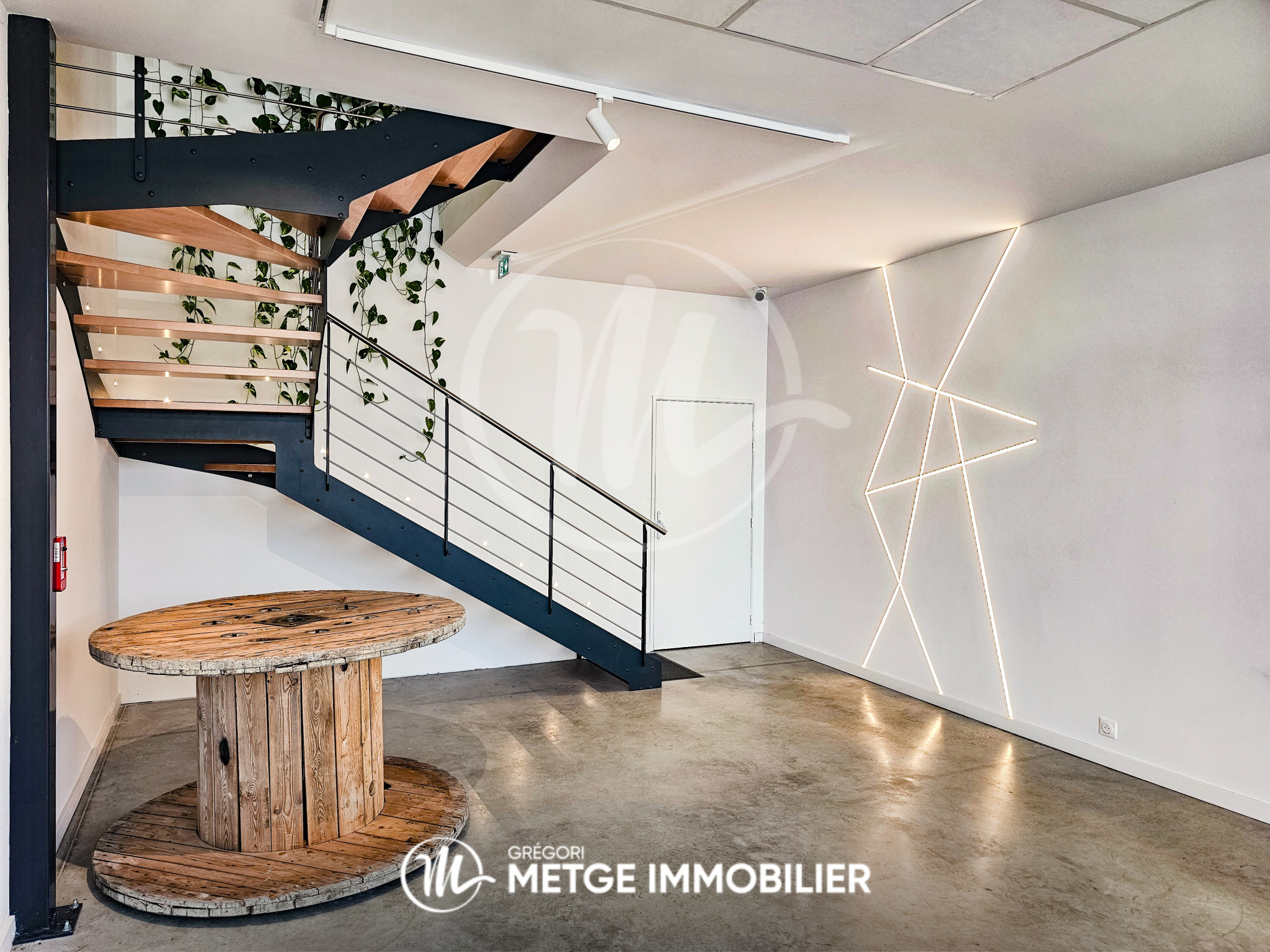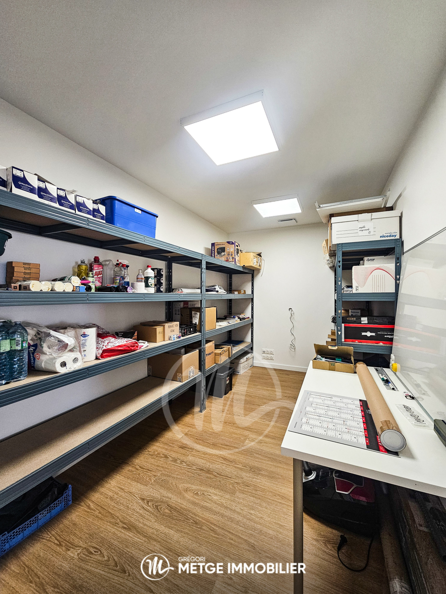 Organisé sur deux niveaux, il développe environ 195 m² utiles, avec une répartition claire entre les espaces de réception, de travail et de stockage.