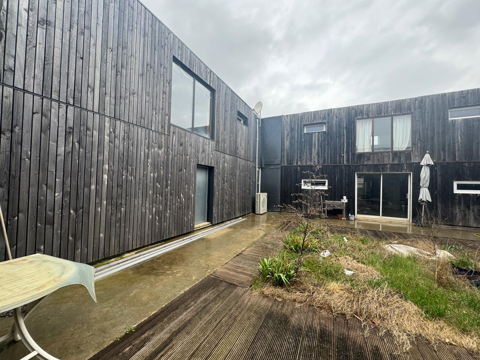 - Extérieurs : l’aménagement des espaces extérieurs est à prévoir, notamment la construction d’un mur de clôture pour plus d’intimité, ainsi que des travaux de terrassement et de création de parking.