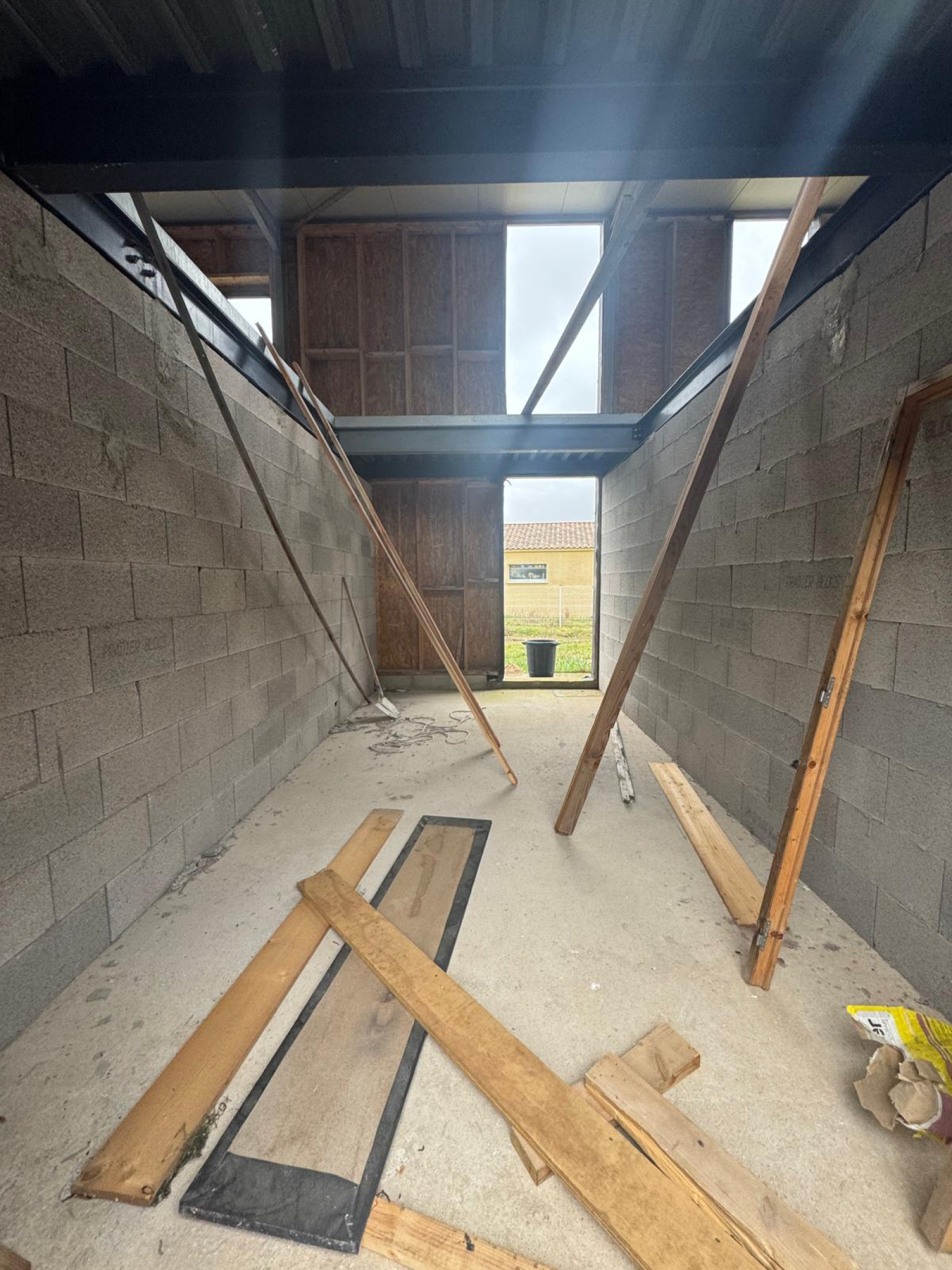- Toiture et ouvertures : la toiture doit être révisée, et des baies vitrées doivent être installées pour apporter de la luminosité et moderniser une grande partie du local.