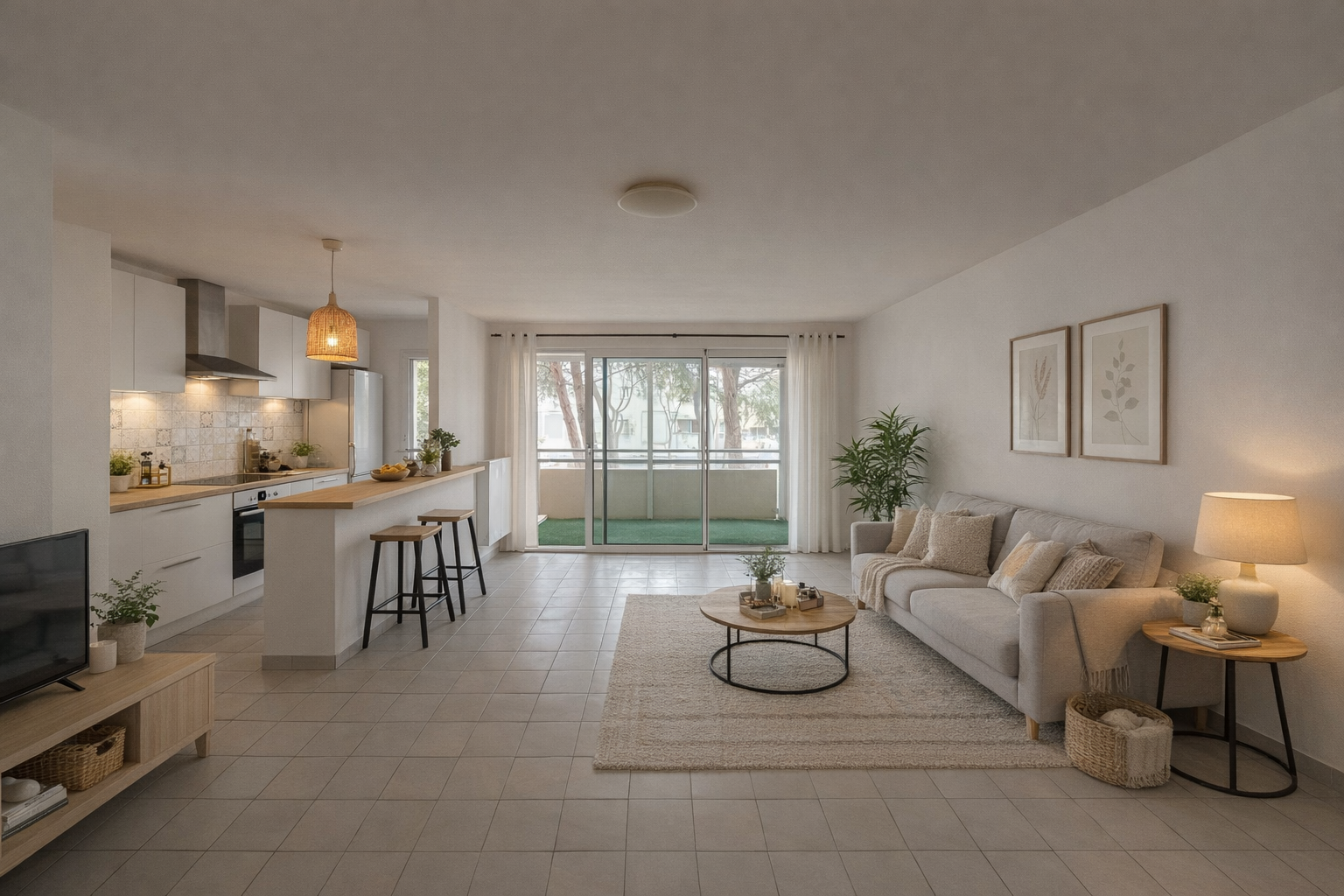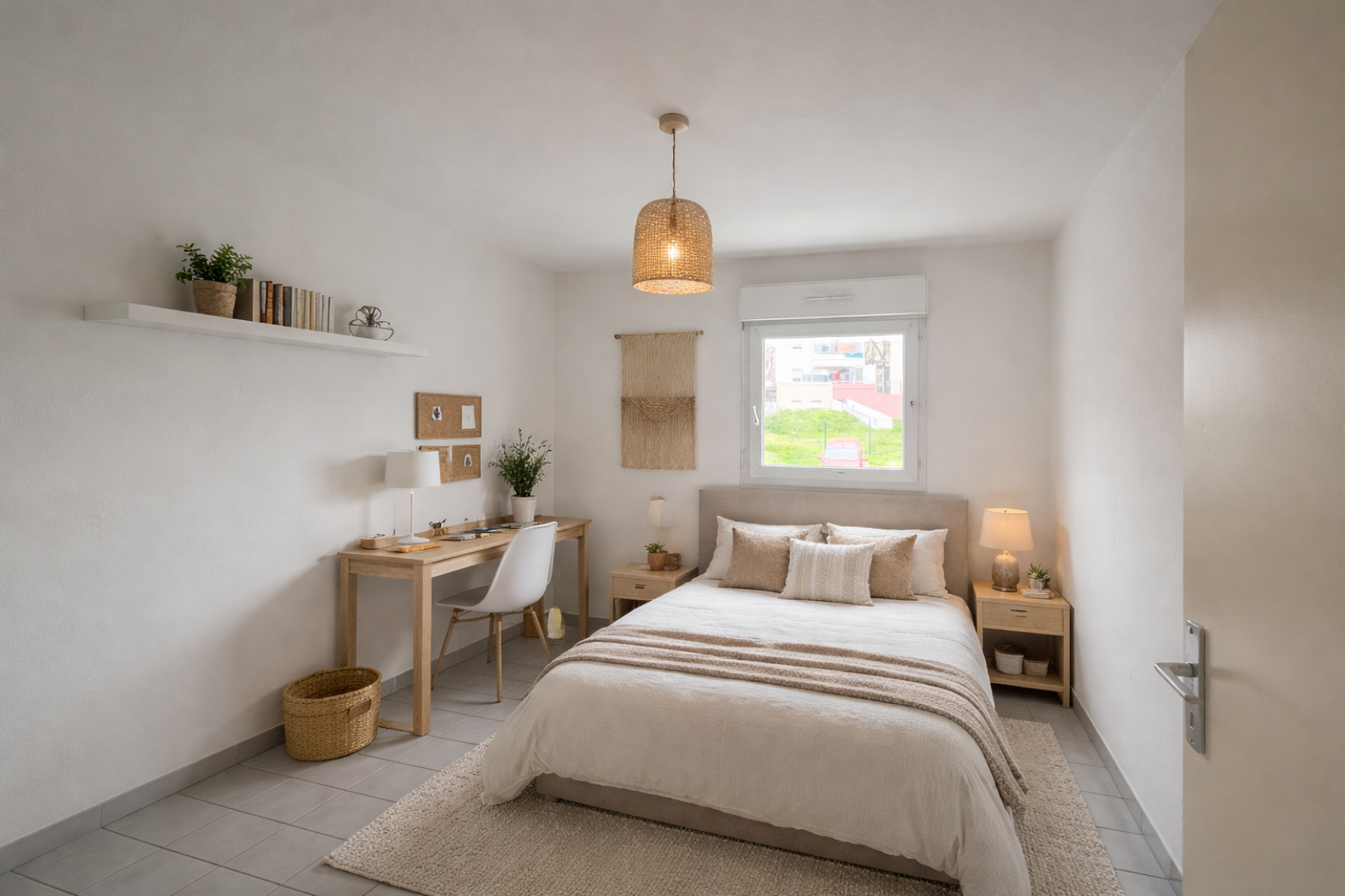 (Visuels d’inspiration générés par IA pour révéler tout le potentiel de l’appartement)